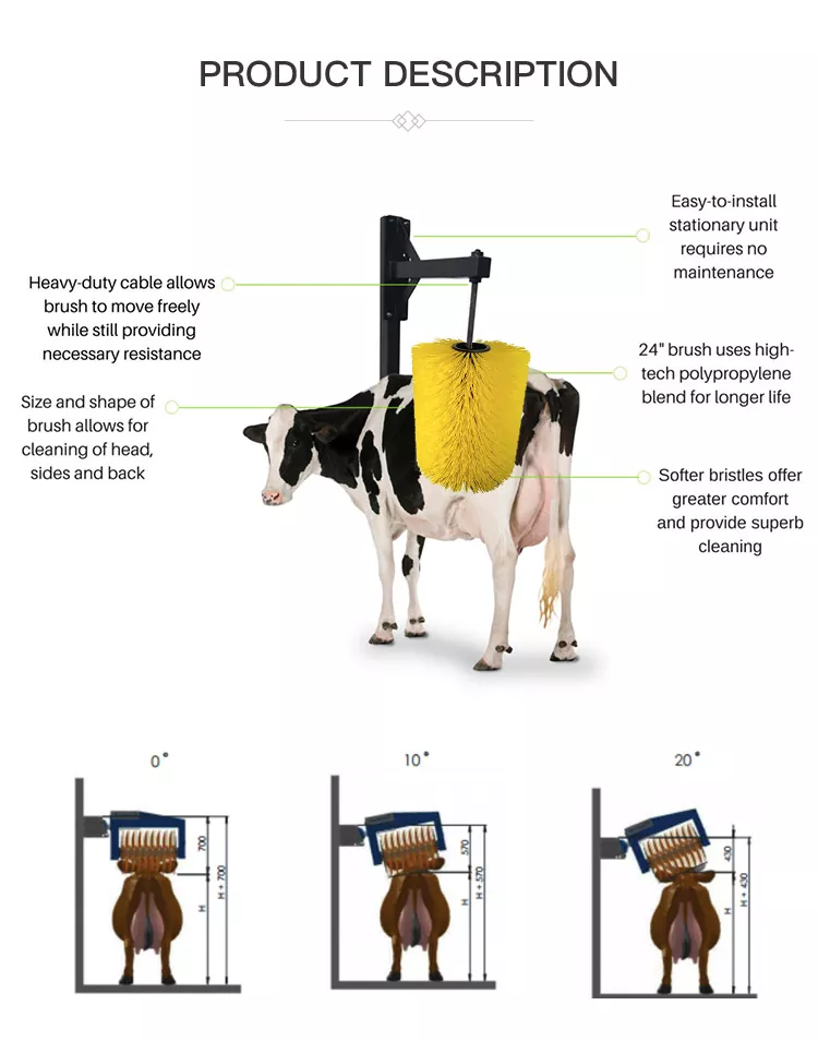 Ang Deba Brothers® ay isang propesyonal na tagagawa ng mga brush sa paglilinis ng baka at kagamitan sa pag-aalaga ng hayop sa China. Ang aming cattle cleaning & massage brush ay nagtatampok ng user-friendly na disenyo, malawak na naaangkop sa mga sakahan ng lahat ng kaliskis, at naghahatid ng pambihirang tibay sa pamamagitan ng mga premium na materyales at mahusay na pagkakagawa. Mahusay na tinanggap ng mga magsasaka ng hayop sa buong mundo, ang nako-customize na roller brush na ito ay ganap na na-verify para sa kanyang matatag na pagganap at mataas na cost-effectiveness.